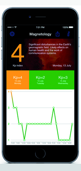Aplicación gratuita que permite ver la previsión de las tormentas geomagnéticas y el estado del campo geomagnético de la tierra.