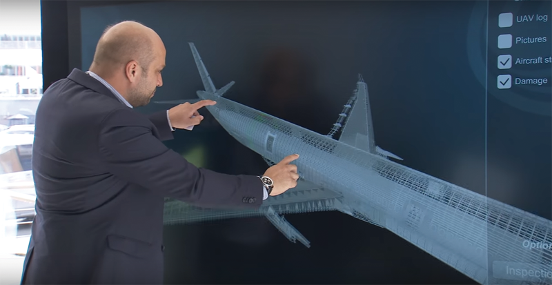 Airbus Revision 3D de sus avionesCon el ánimo de reducir el tiempo y la dificultad en el proceso, la empresa decidió utilizar aviones no tripulados. Utilizando drones autónomos (con supervisión humana),  se consiguen aproximadamente 150 imágenes de la aeronave que se representan en un modelo 3D .  Este trabajo se realiza en tan sólo 10 a 15 minutos y evita que el personal de inspección tenga que realizar esta tarea de otro modo más difícil y peligroso. Airbus utiliza un AscTec Falcon 8 avión no tripulado construido por Ascending Technologies con un Sony A7R combinado con la lente  Sonnar T* FE 35mm f/2.8 ZA.  El avión no tripulado también ha sido dotado de una cámara REALSENSE 3D de Intel para evitar obstáculos y facilitar maniobras.