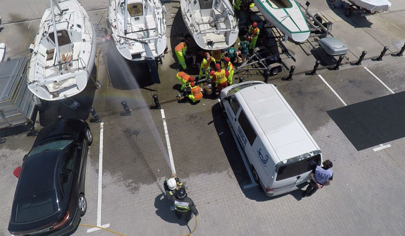 El primer incidente tuvo lugar en el agua. Simulaba el choque entre dos barcos. En esta situación, es de especial ayuda el uso de un dron con sensor térmico para la localización de cuerpos dentro del mar.