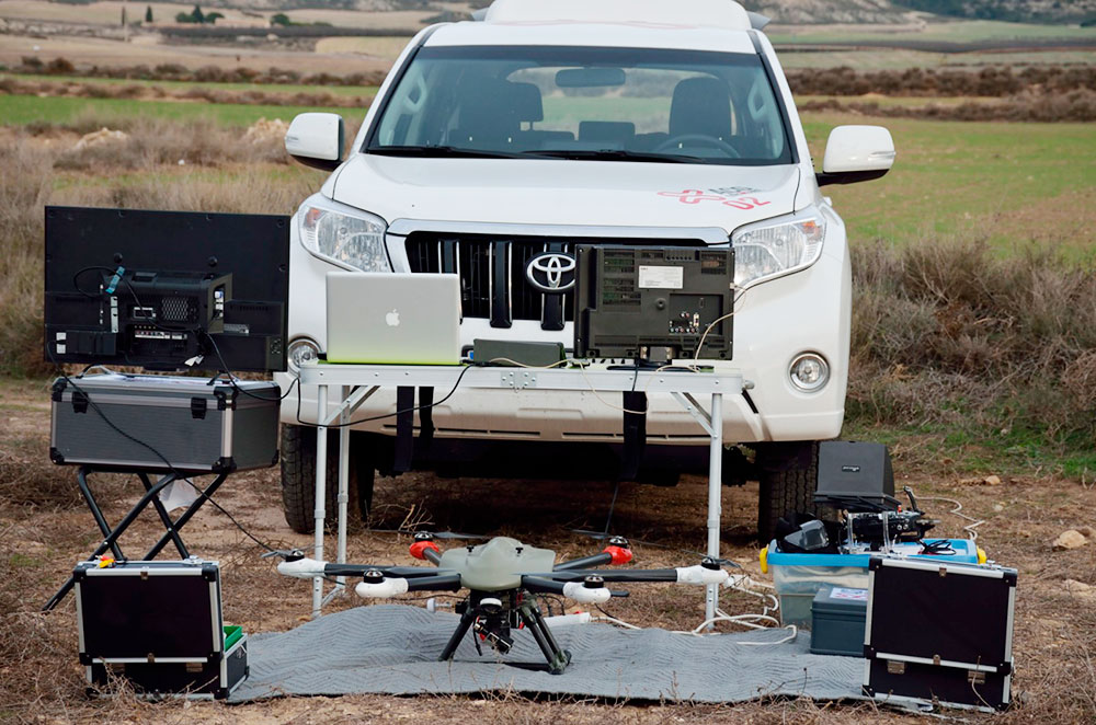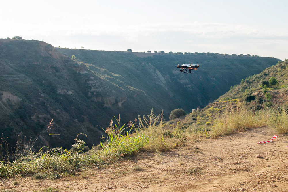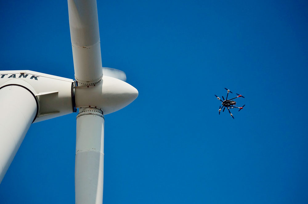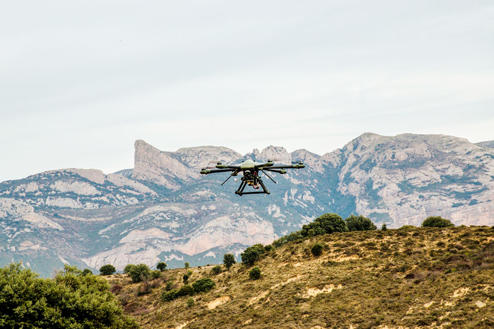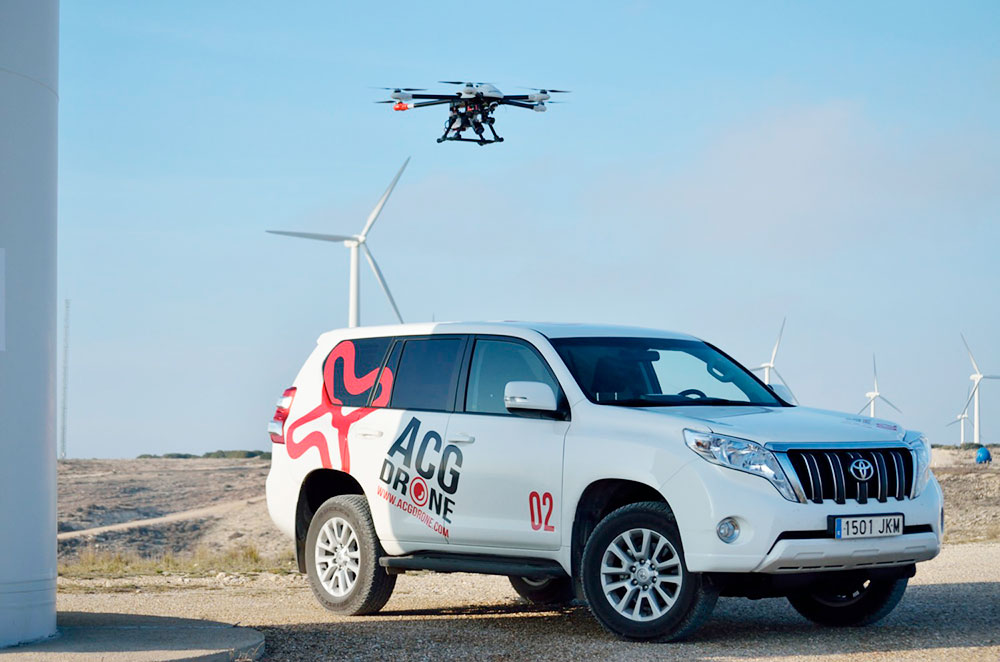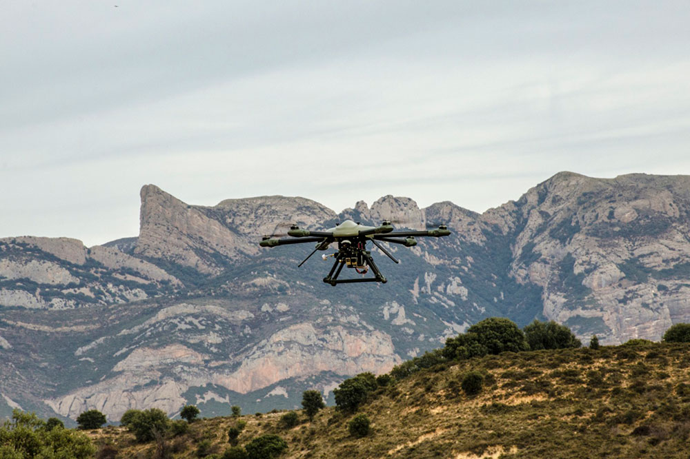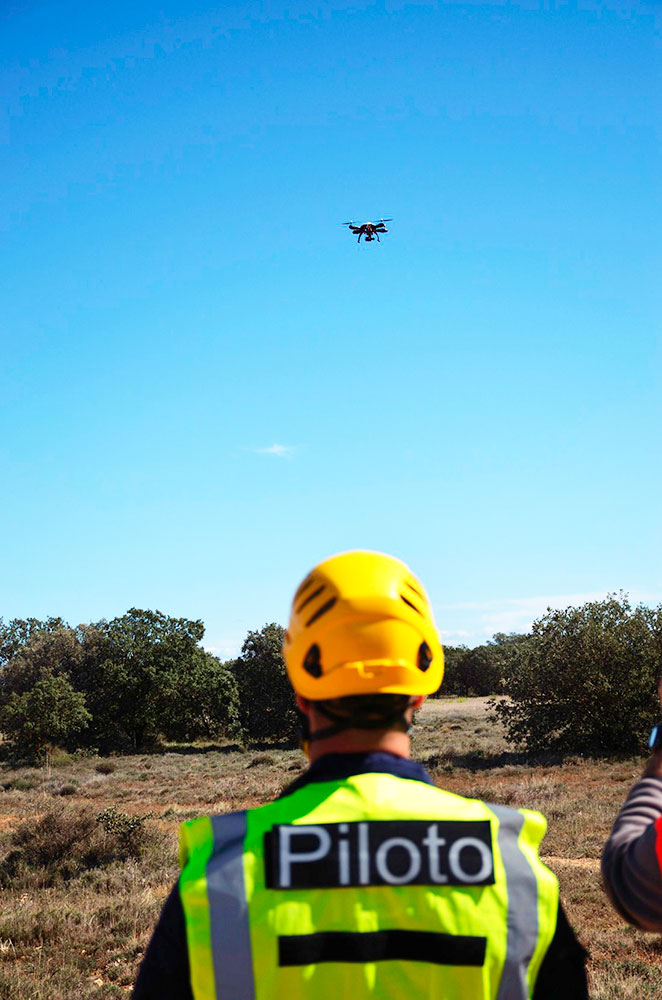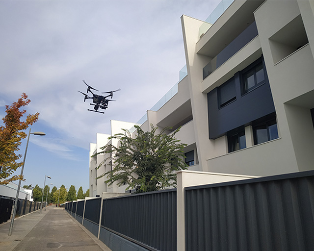 Trabajos en el terreno industrial:  Inspección de placas solares en plantas fotovoltaicas. Inspección de cubiertas en construcciones previa a la rehabilitación de edificios. Supervisión y control de volúmenes en canteras y minería. Revisión de edificios de patrimonio con difícil acceso a alguna de sus zonas. Comprobación de elementos instalados en edificios tras la finalización de obra. Toma de imágenes para topografía y fotogrametría. Trabajos de termografía para búsqueda de humedades en fachadas. Toma de imágenes fotogrametría para posterior elaboración de modelos 3D. Búsqueda de personas en lugares de difícil acceso, por ejemplo en el Pirineo aragonés. Inspección de aerogeneradores. Control periódico del estado de líneas eléctricas y estaciones eléctricas. Supervisión de grandes estructuras como puentes y antenas de televisión.
